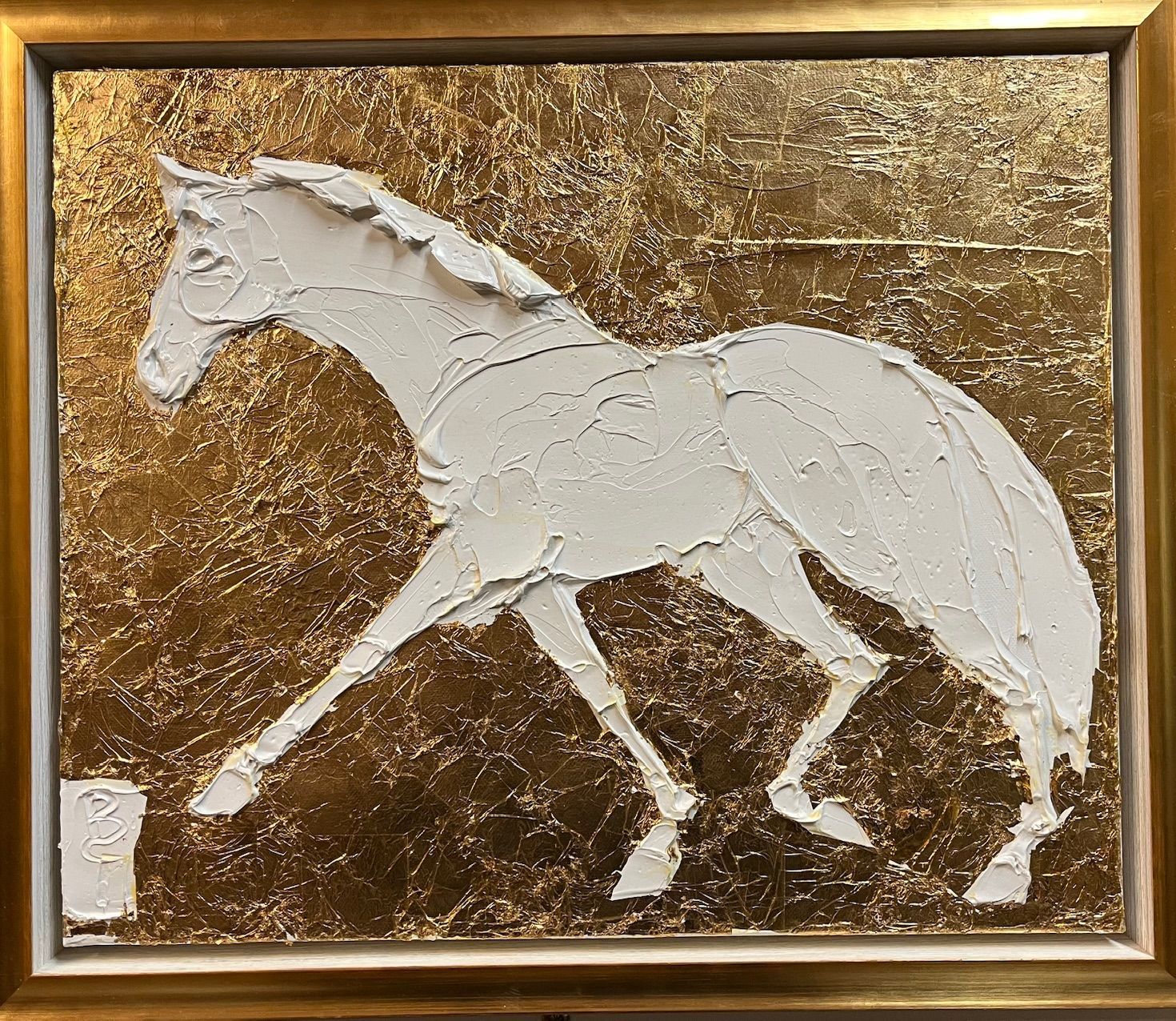 sculpted oil paint with 24 carat gold leaf